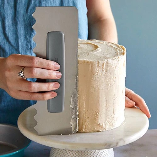 Der Glasurglätter verleiht dem Aussehen von selbstgebackenen Torten ein glattes Finish oder Wellenkanten. Dank seines ergonomischen Soft-Griffs liegt dieses Dekorationswerkzeug leicht und bequem in der Hand, während du Buttercreme, Baiser und Schokoladenganache auf Torten verteilst.