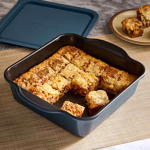 Die Brilliance Antihaft-Backformen vereinen erstklassige Funktionalität mit edlem Design in Brilliance-Blau – abgestimmt auf unser beliebtes Brilliance-Antihaft-Kochgeschirr. Die hochwertige Antihaftbeschichtung auf Silikonbasis sorgt für müheloses Lösen deiner Speisen und eine besonders einfache Reinigung. Der robuste, aluminisierte Stahl verteilt Hitze gleichmäßig und sorgt so für perfekte Backergebnisse bei jedem Gericht. Die integrierten Griffe geben einen sicheren Halt beim Transport, die flachen Kunststoffdeckel ermöglichen platzsparendes Stapeln im Kühl- oder Gefrierschrank.