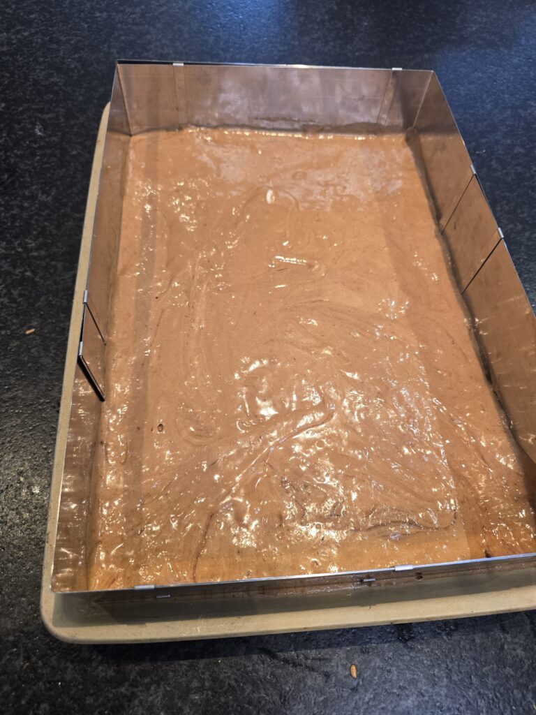 Schoki auch vorsichtig unterheben, Teig auf den James verteilen