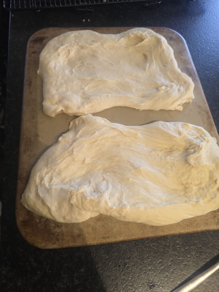 Teig mit den Händen durchkneten und in 2 Teilen teilen