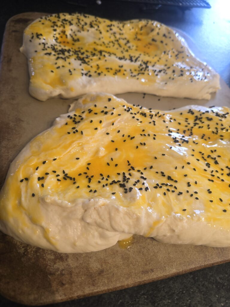 Ei-Gemisch darauf streichen und Kümmel verstreuen