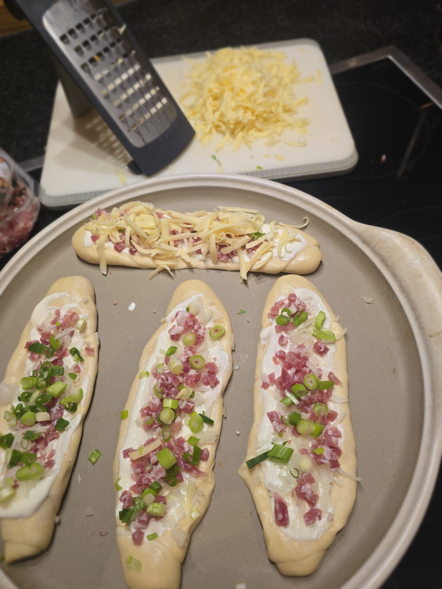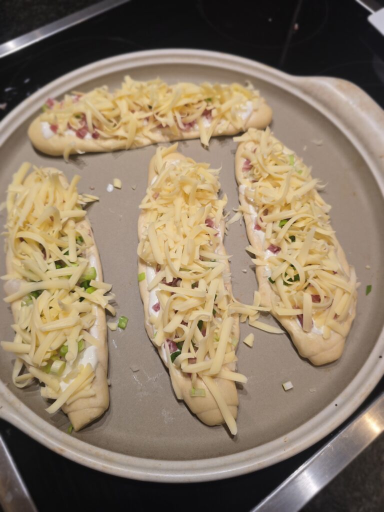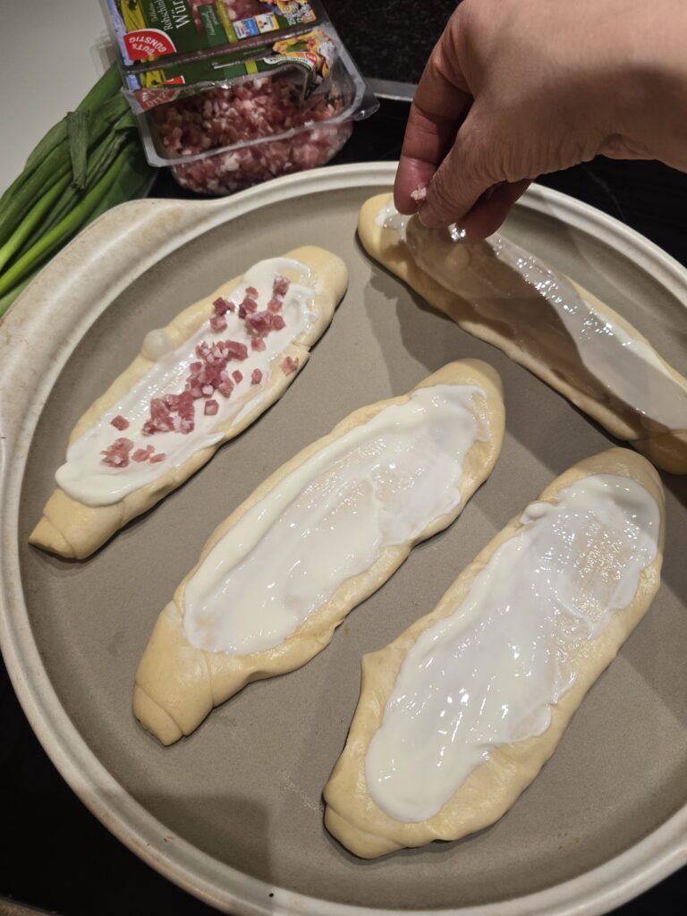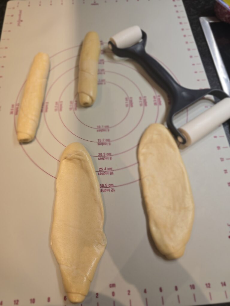 Stangerl auf der Teigunterlage auftauen