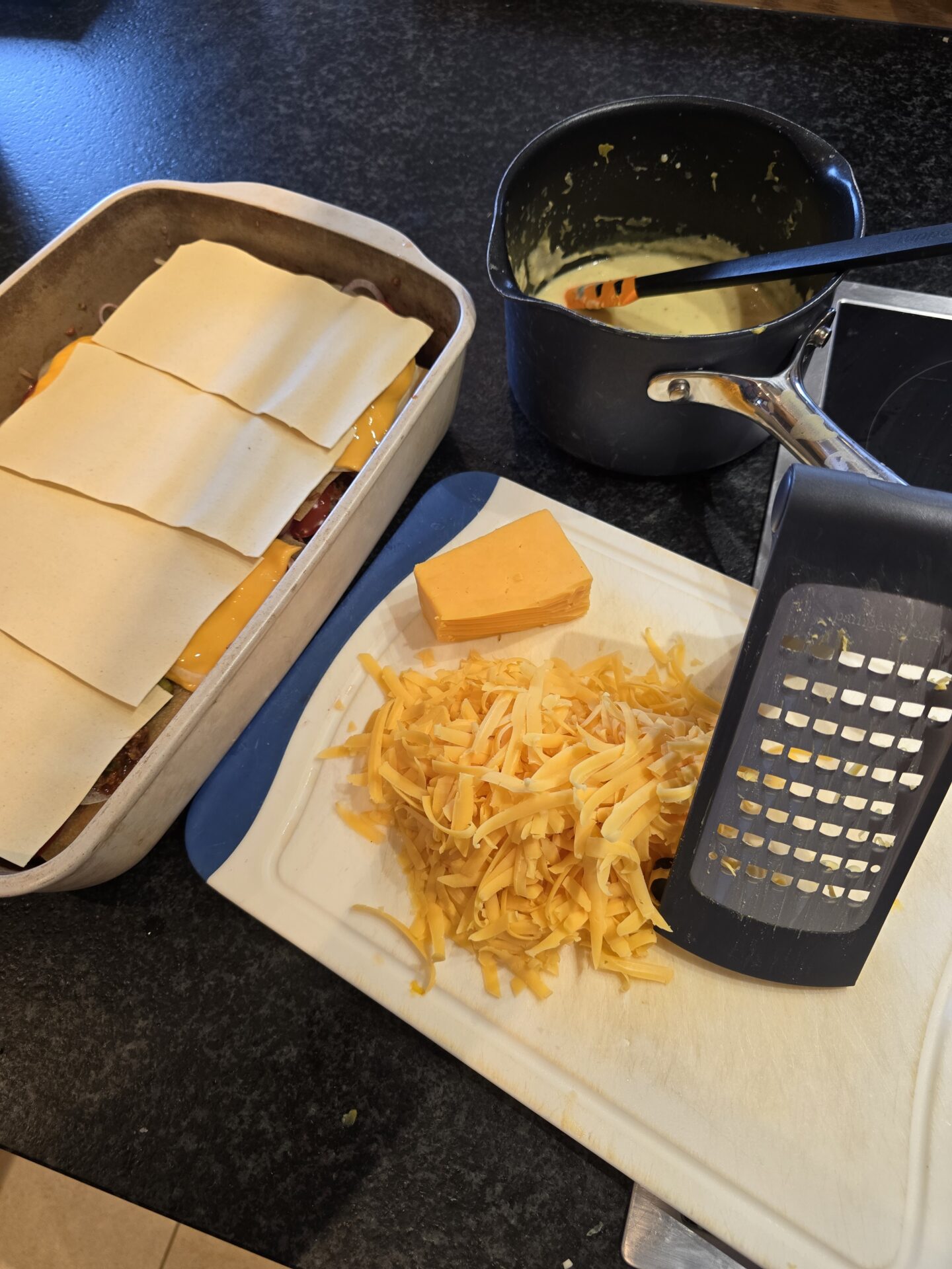 – 1/3 Bolognese Sauce, Bechamel – 4 Lasagneblätter