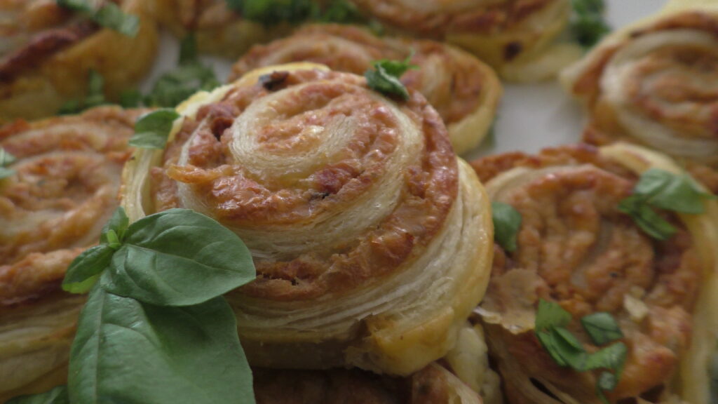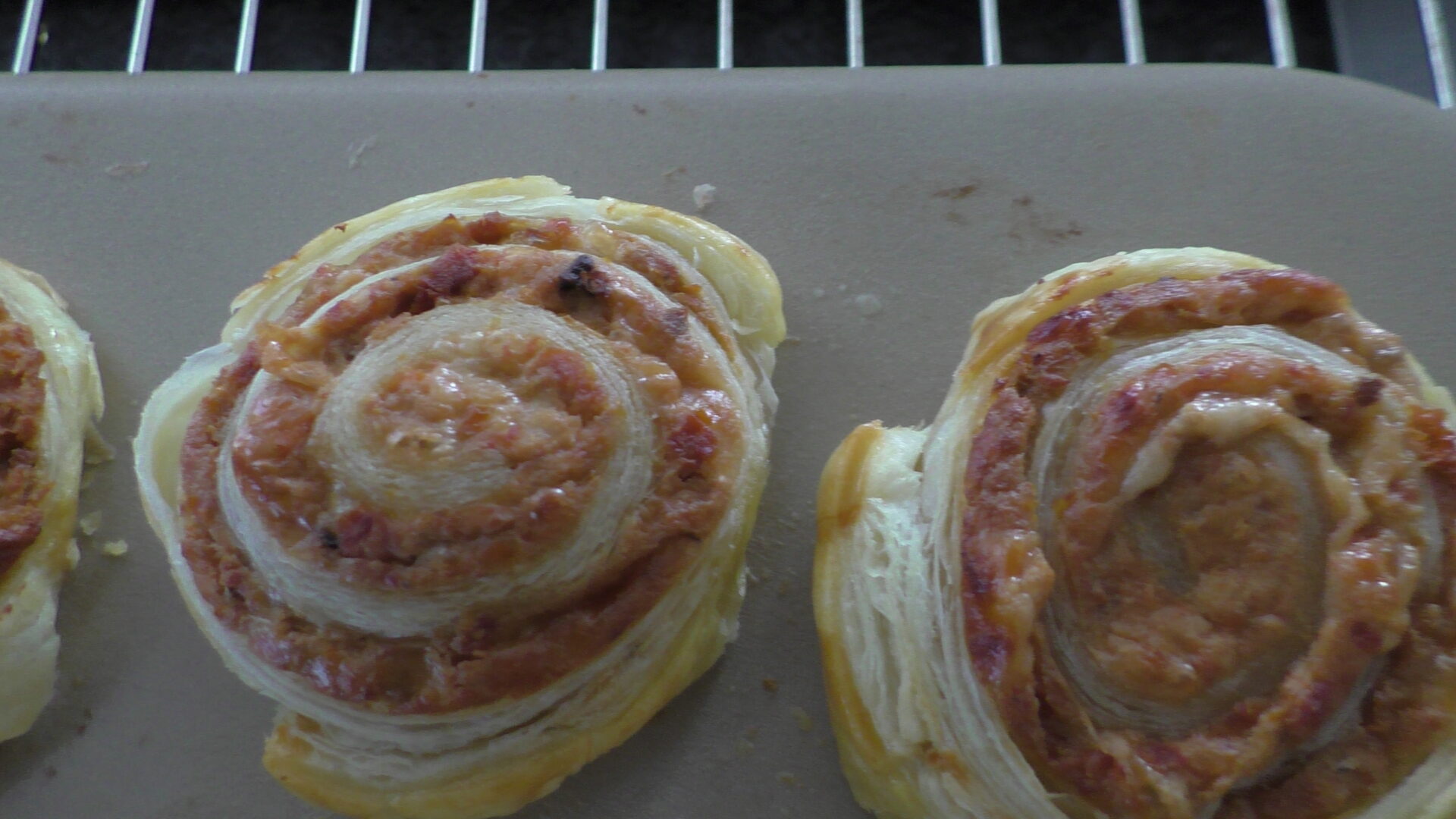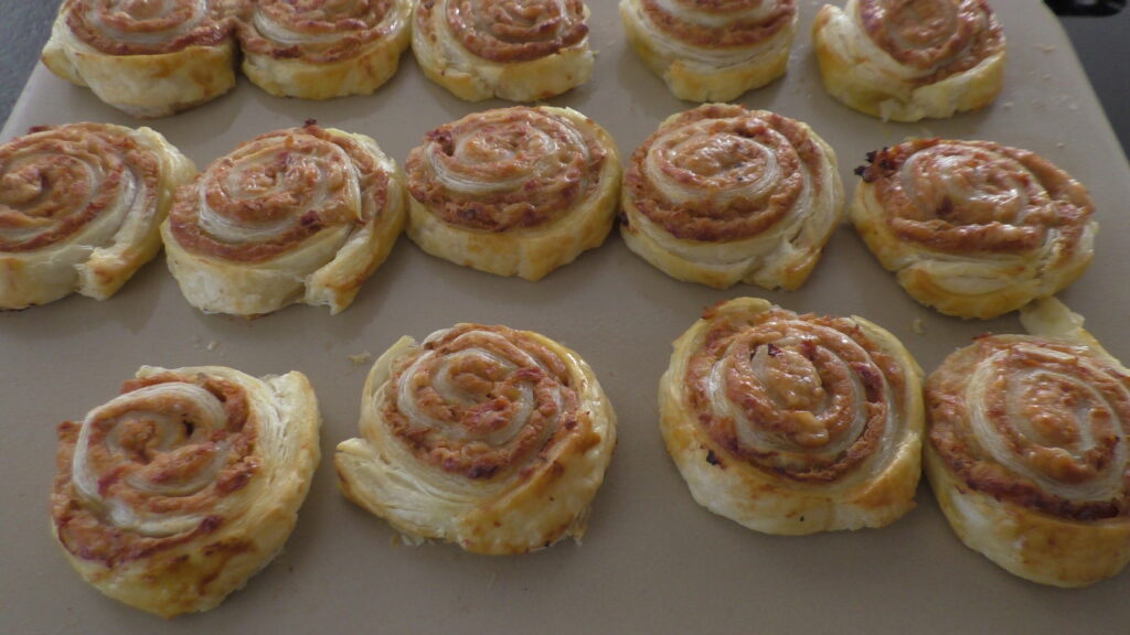 Blätterteige ausrollen, Ei trennen und jeweils mit Eiweiß bestreichen