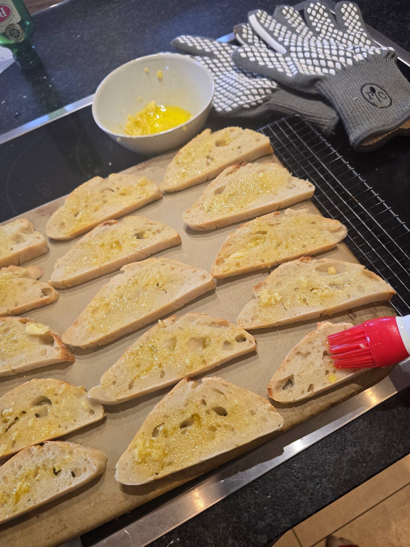 Knobiöl bepinseln (nicht das komplette Öl verbrauchen)