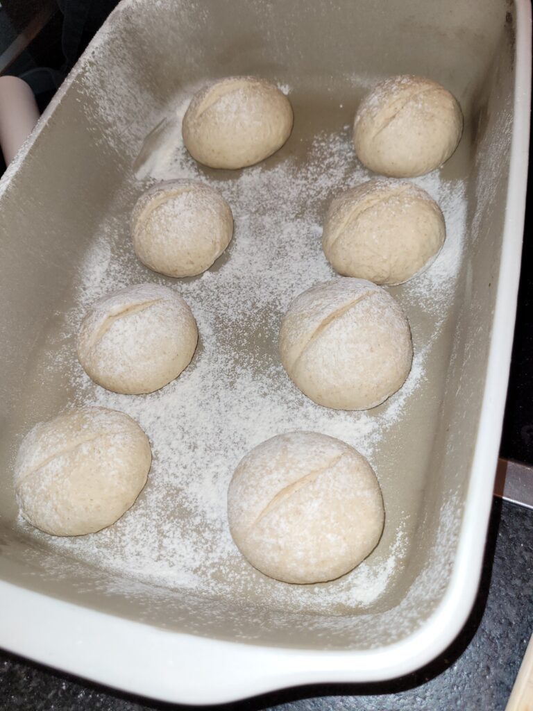 Teig in 8 Teile teilen, jede Semmel kneten und schleifen