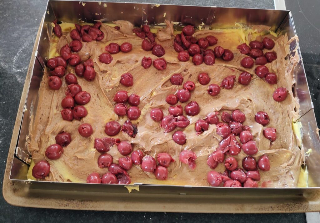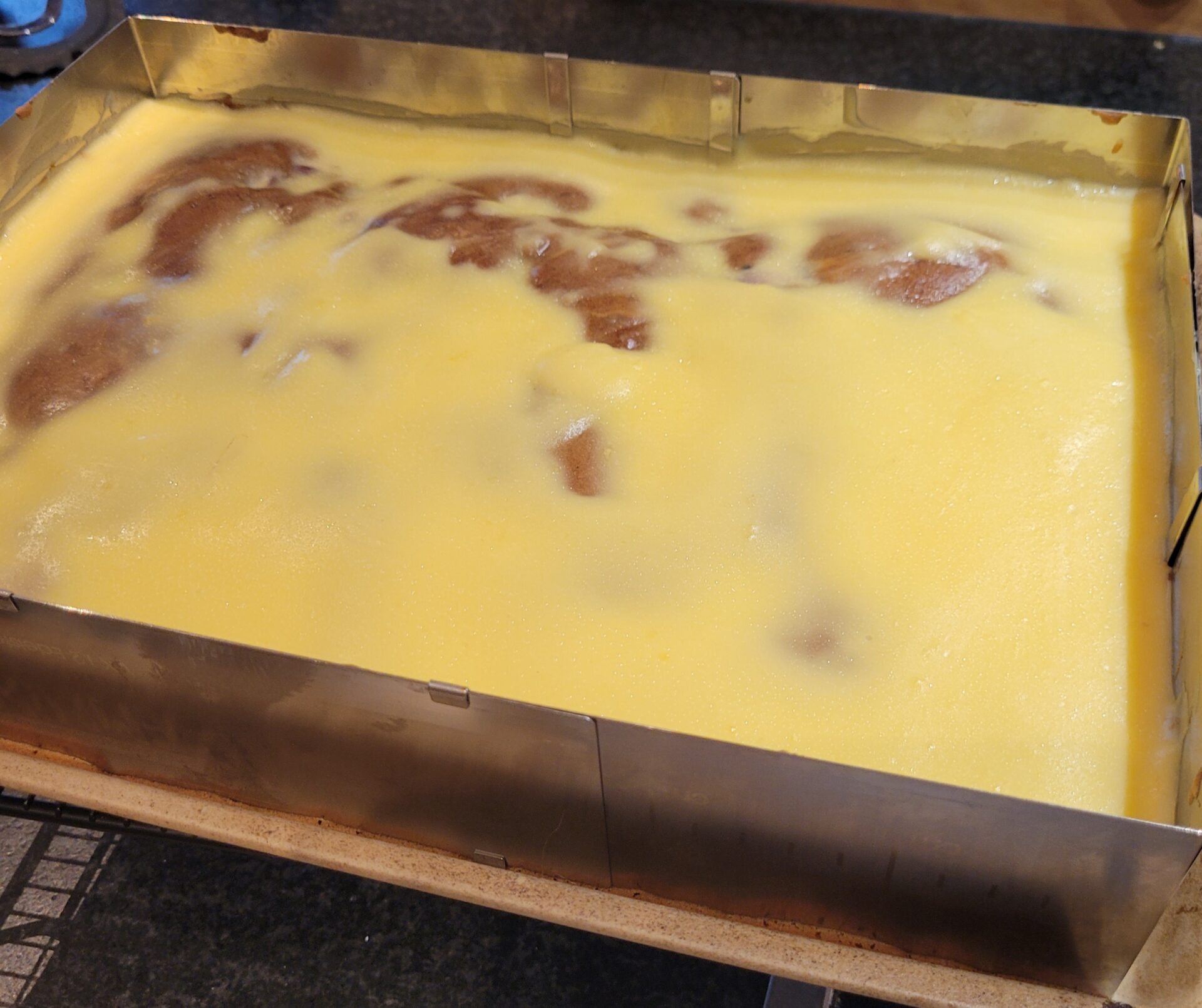 kurz vor Ende der Backzeit mit der Creme beginnen