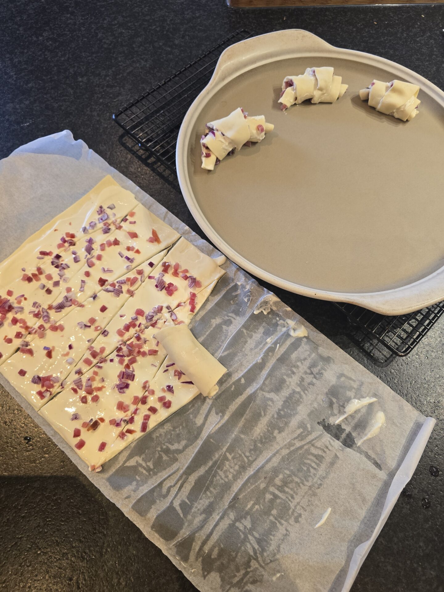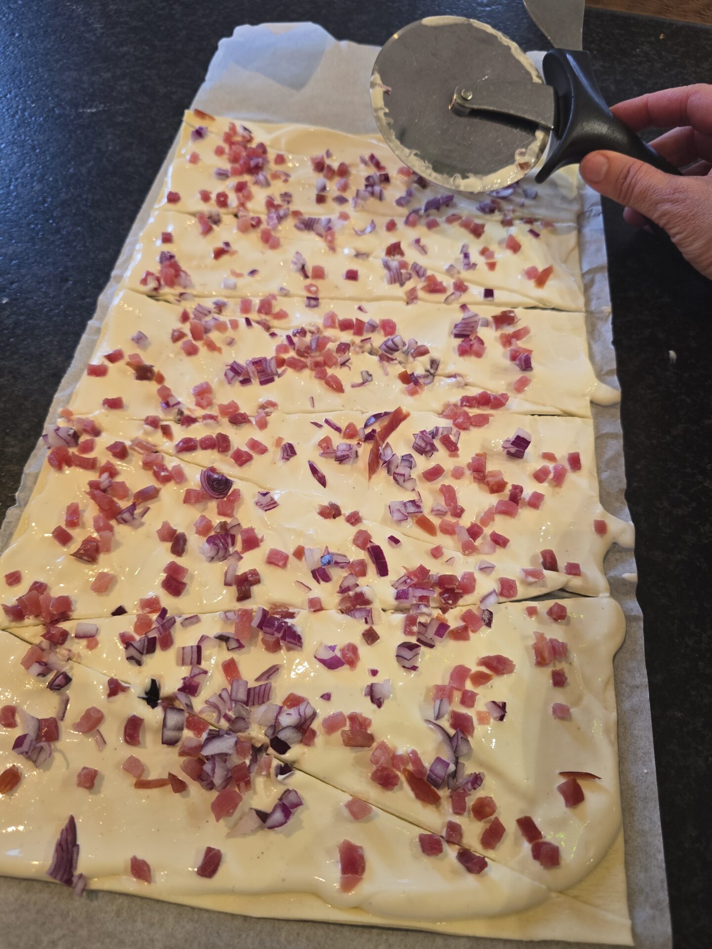 Mit dem Pizzaschneider „Zick-Zack“ schneiden