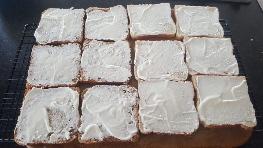 Toasts erst mit Schmand bestreichen