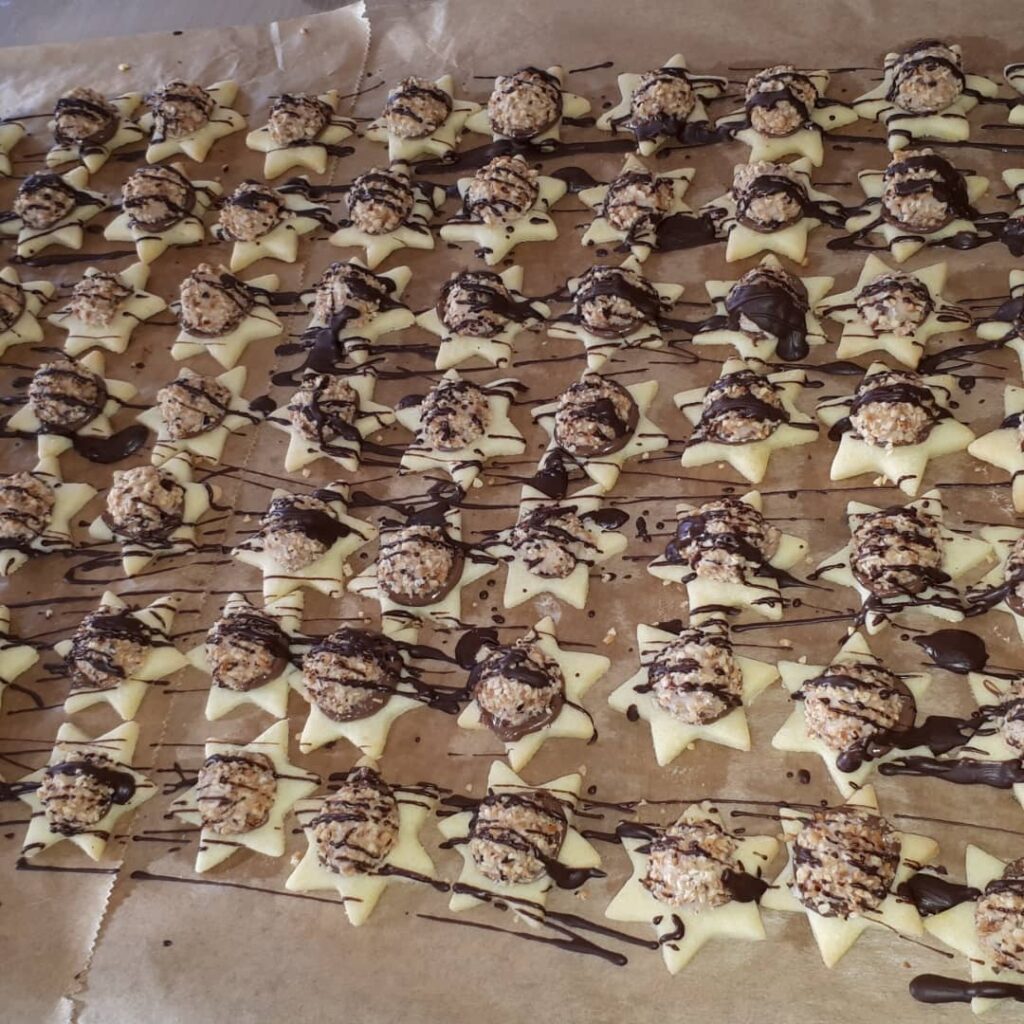Einen Kleks Nougat auf den Stern geben und Giotto drauf setzen