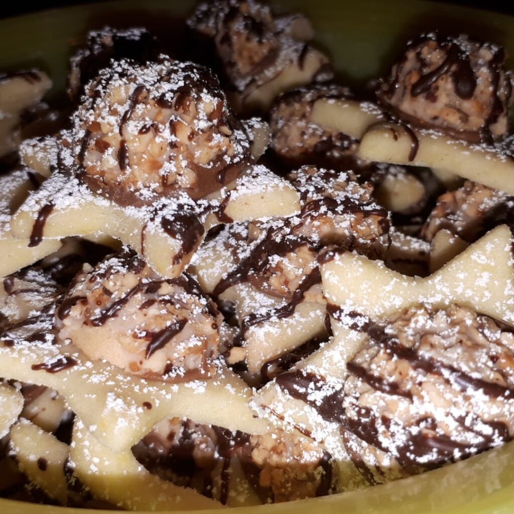Nougat leicht erwärmen, in die Garnierspritze füllen
