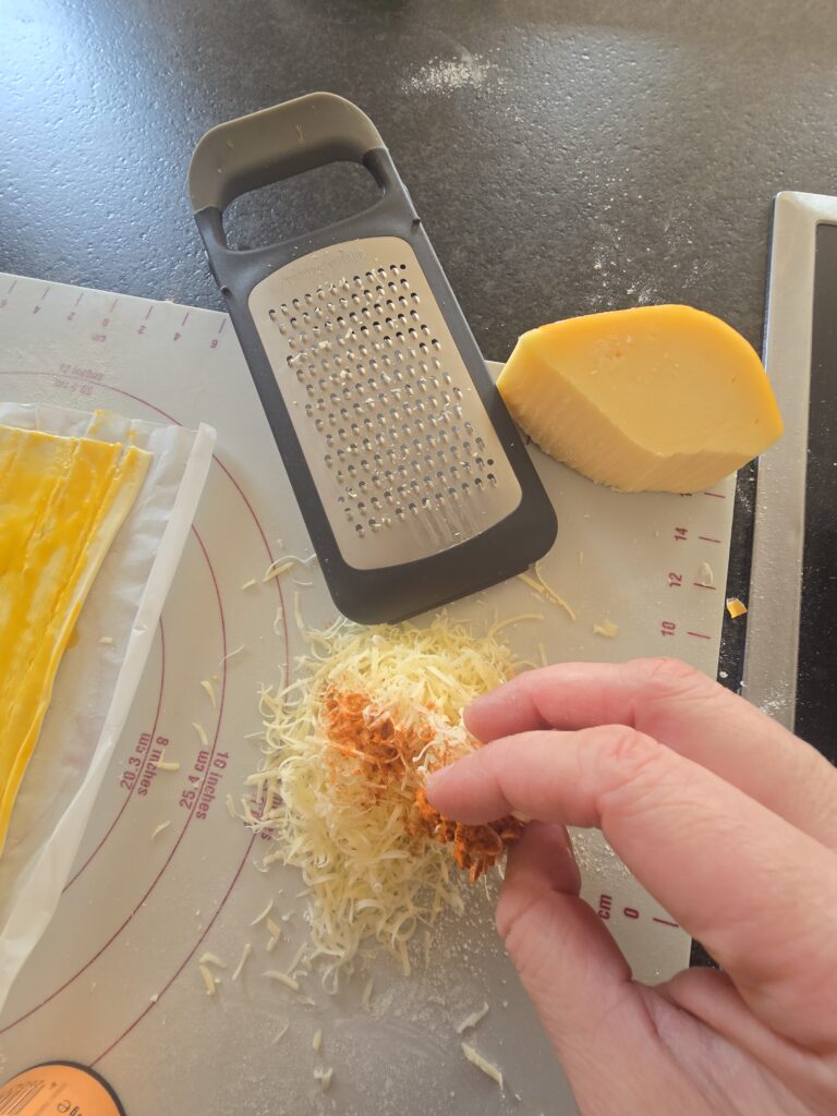 Tipp: Käse habe ich etwas mit Paprikapulver gemischt