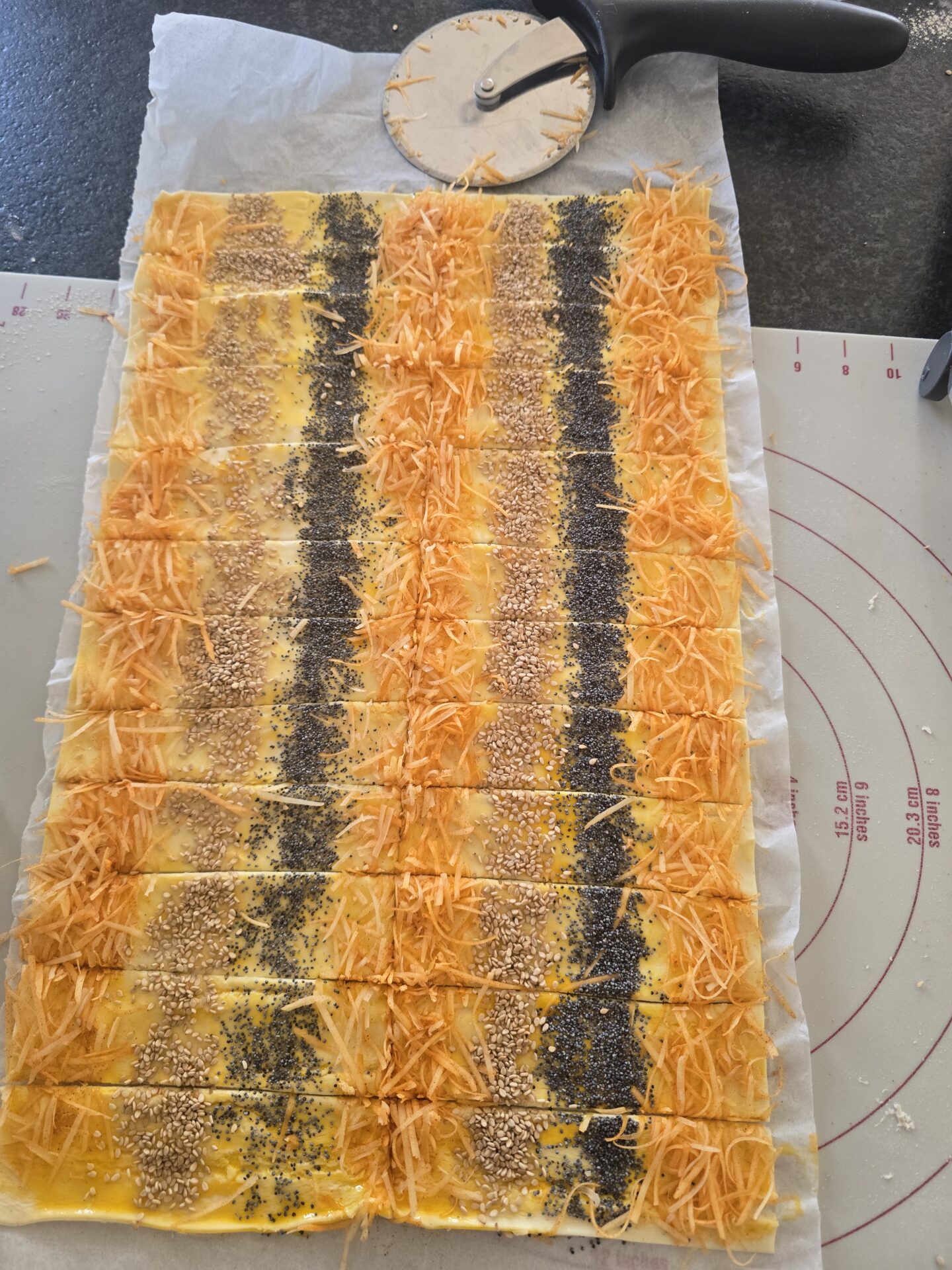 Blätterteig nach Belieben bestreuen