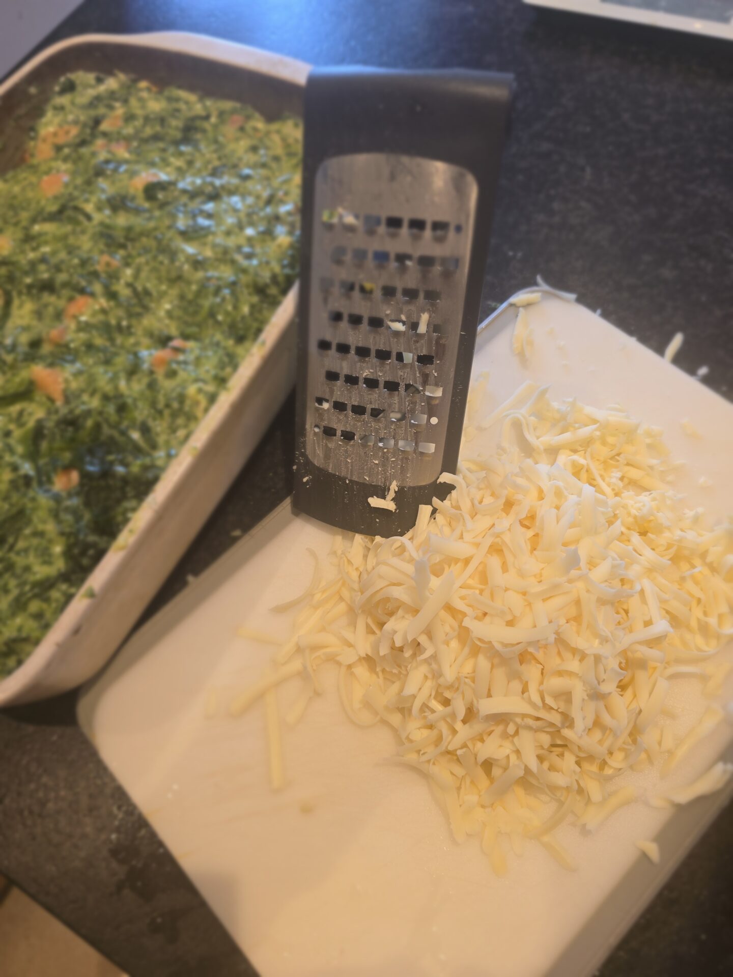 Käse frisch reiben und darüber verteilen