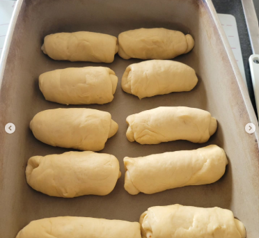 jeden Teigling mit den Teigroller etwas lang machen und aufrollen
