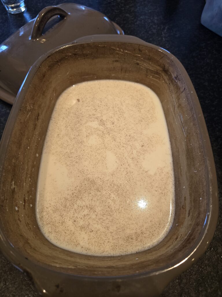 umrühren und 10 Minuten mit Deckel im ausgeschalteten Ofen nachziehen lassen