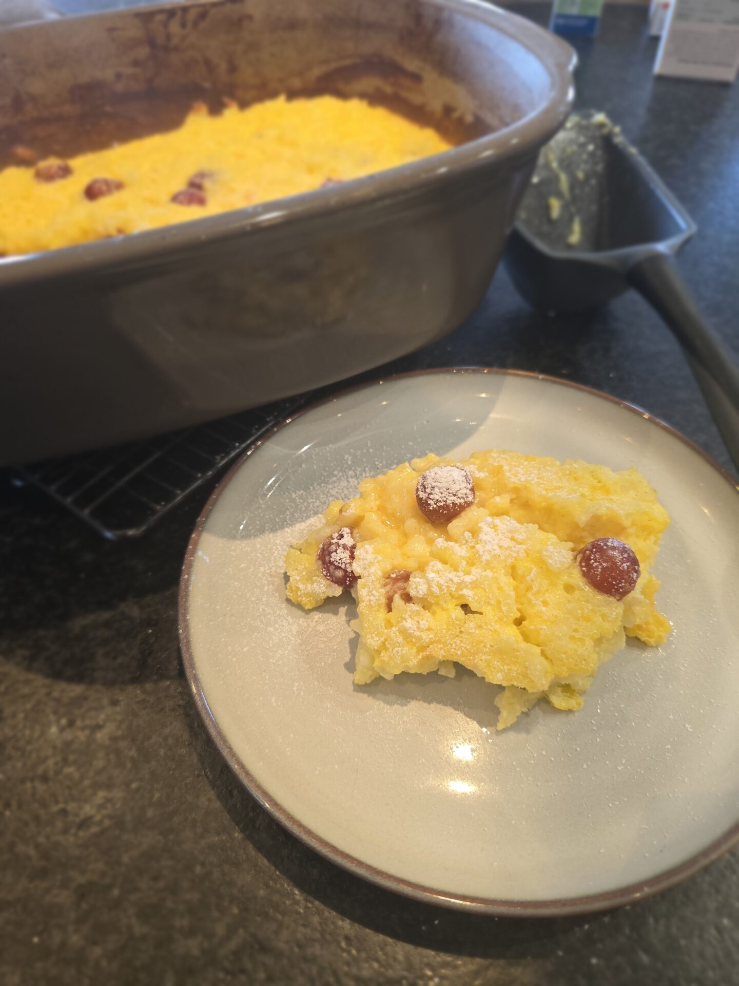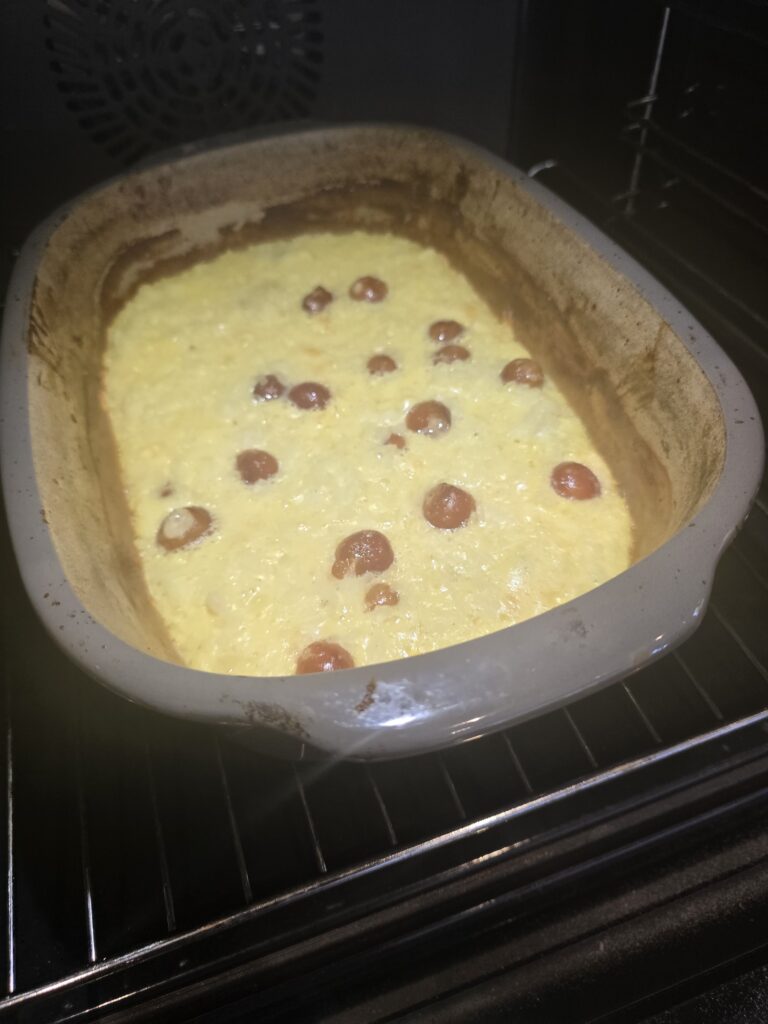 zur Eigelbmasse den Milchreis und anschließend das Eiweiß unterheben