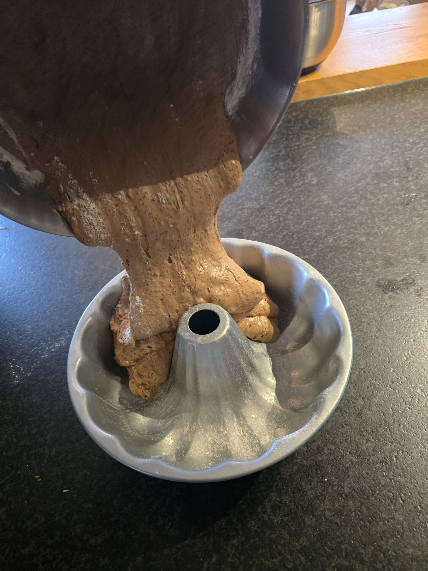 Ofen vorheizen O-/U 180°C, Kranzform etwas fetten und mehlen
