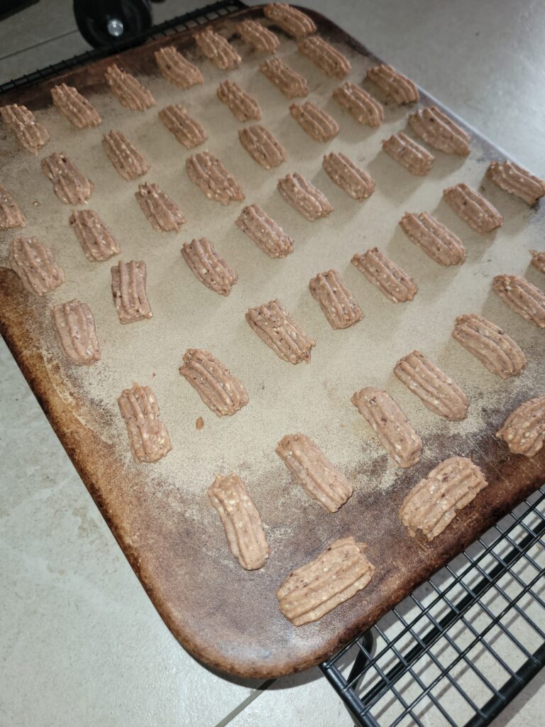 – Die Stoneware (z.B. Zauberstein/James) an einen kühleren Ort stellen, bevor Ihr den Teig draufspritzt, ebenso vor dem Backen nochmal 10 Minuten kühler stellen (z.b.Speisekammer), so könnt Ihr das auseinanderlaufen verhindern!