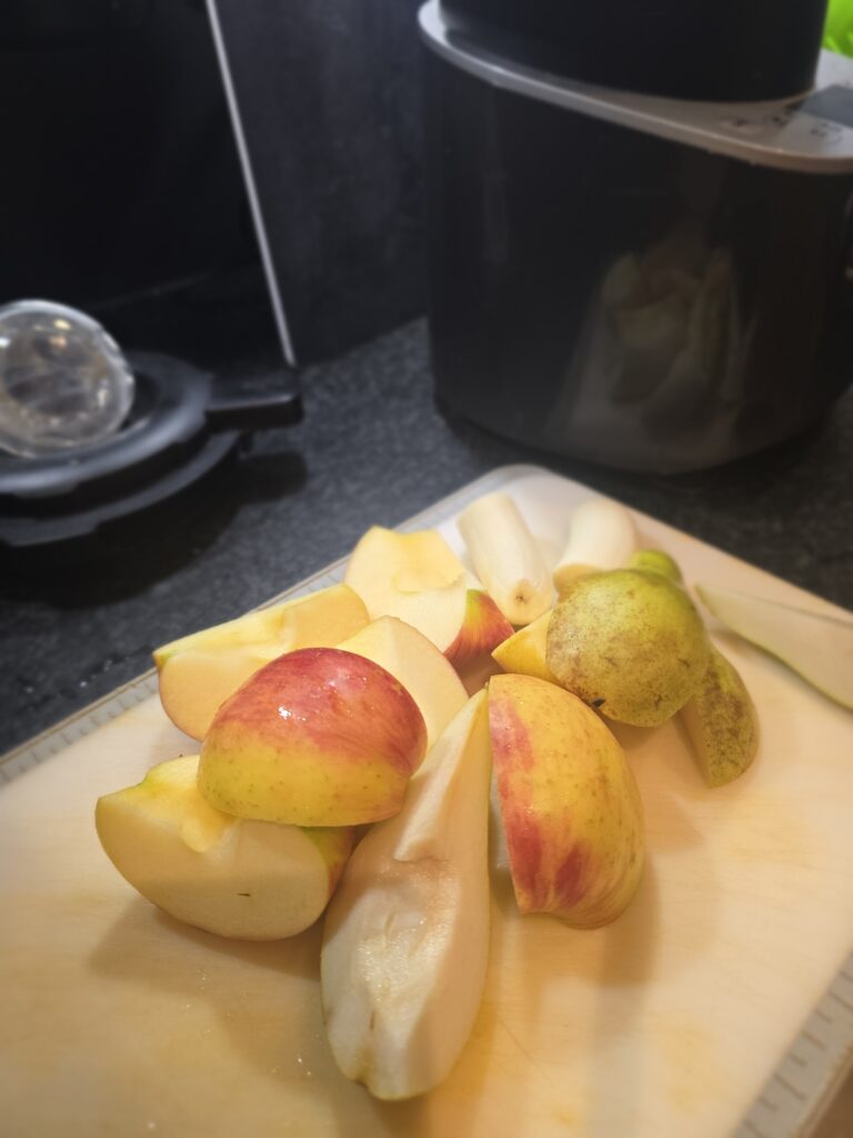 Obst schneiden und mit dem Wasser
