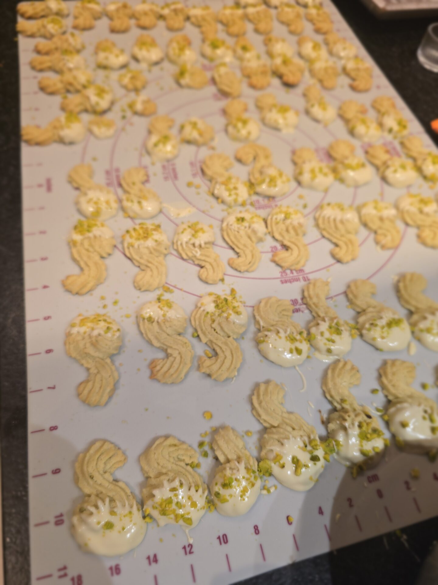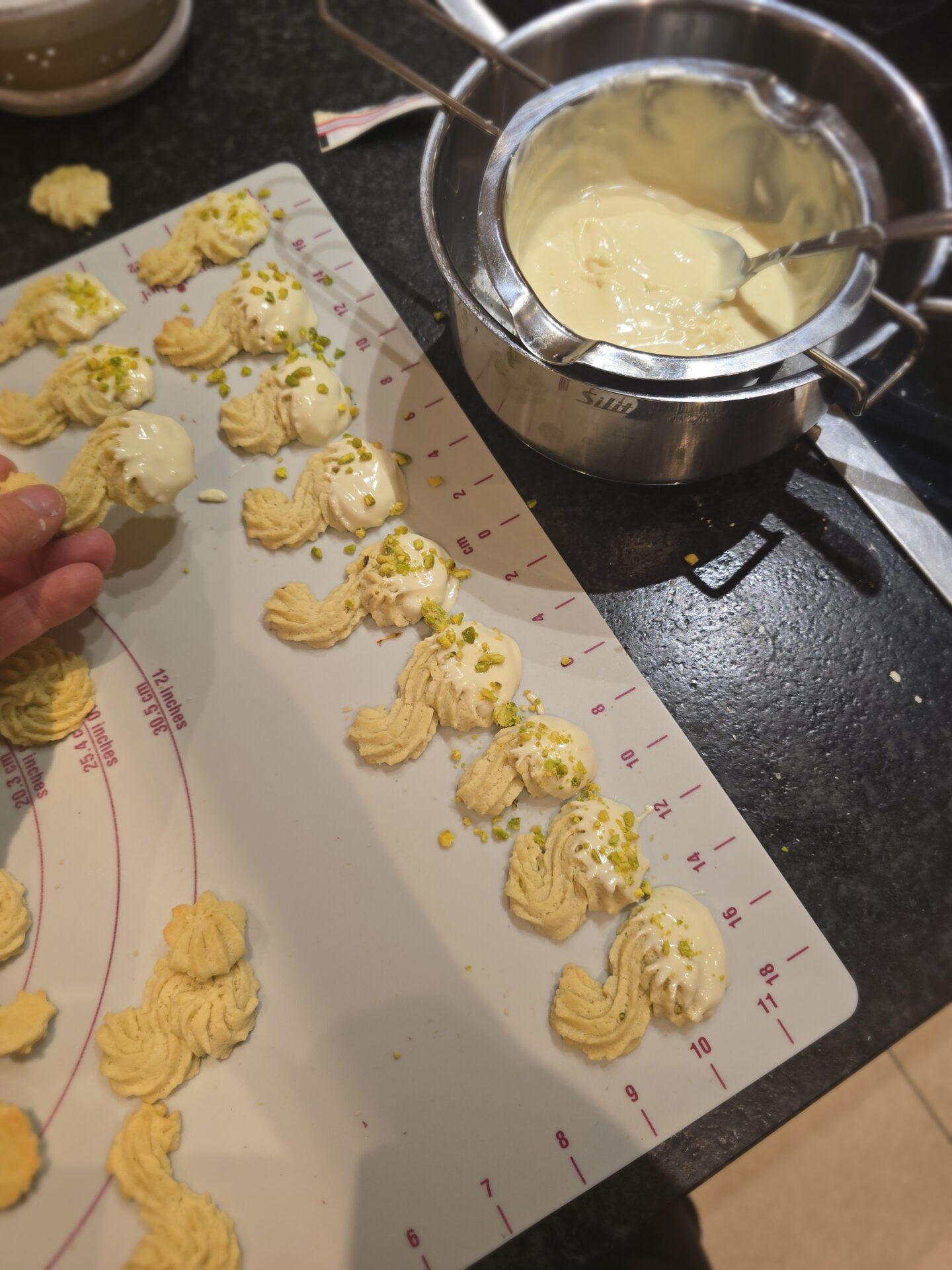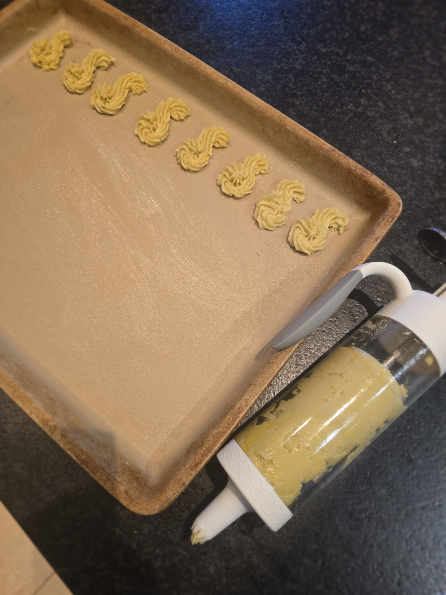 Teig in die Garnierspritze füllen und auf den Stein spritzen