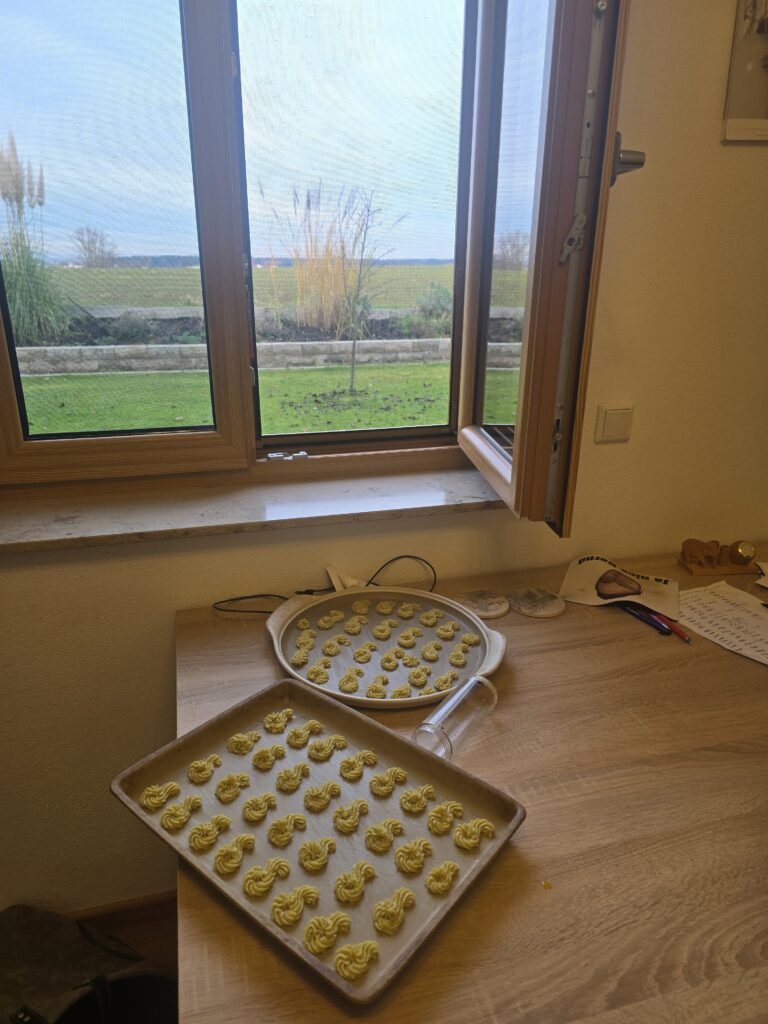 vor dem Backen 20 Minuten wieder in den kühlen Raum stellen
