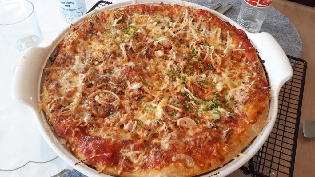 Ofen vorheizen O-/U (noch besser Pizzastufe – Symbol siehe Bild) 250°C