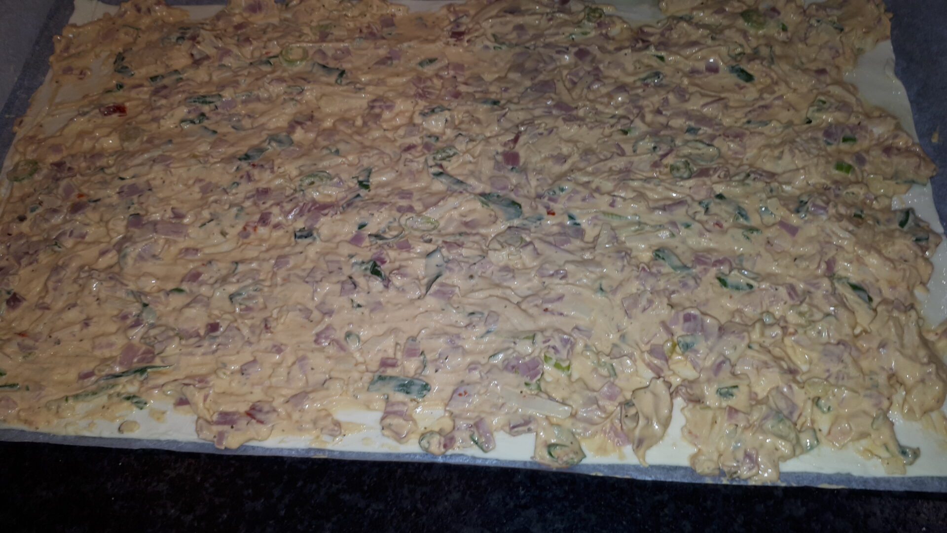 Füllung auf einen Blätterteig schmieren