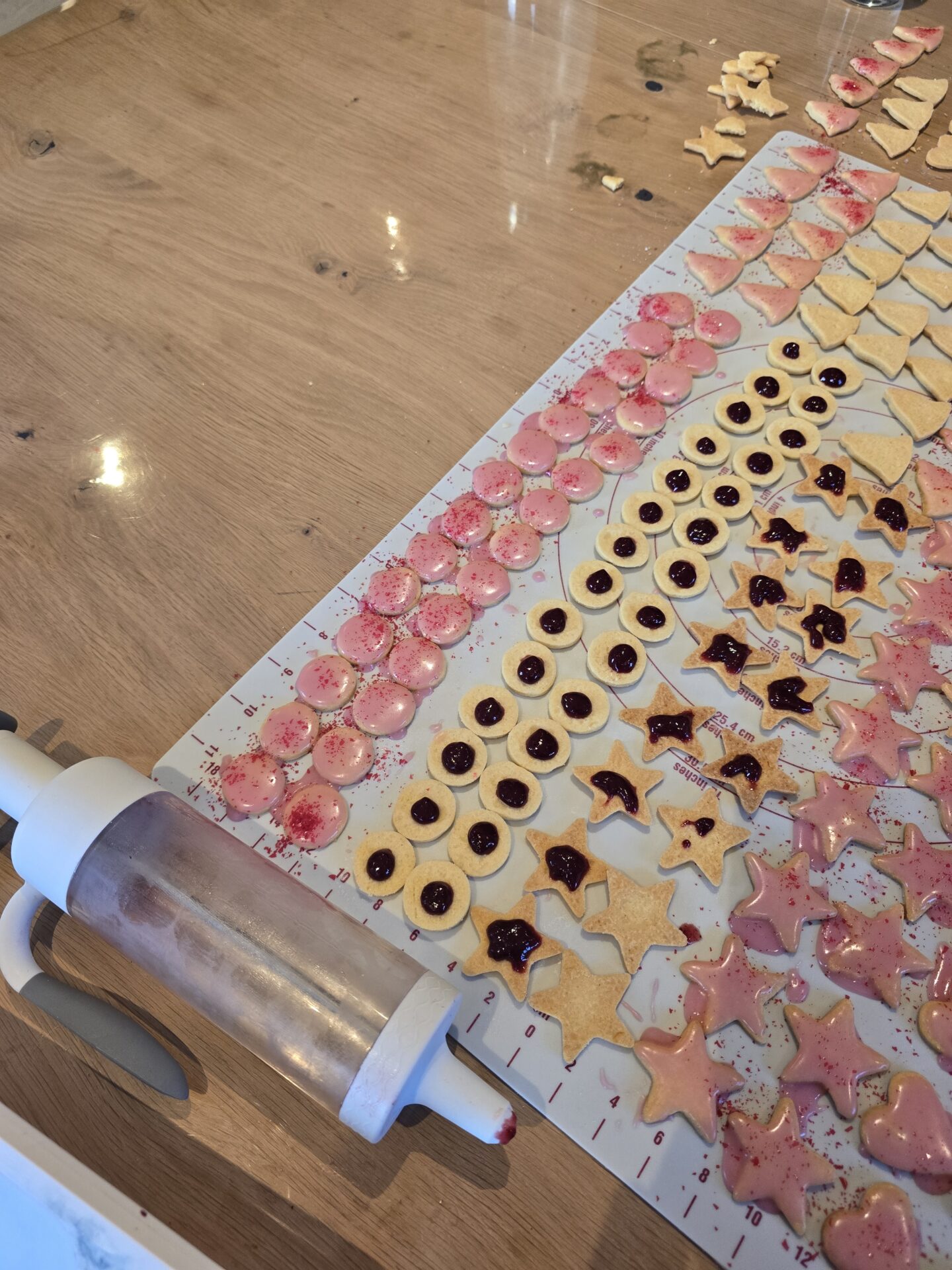 Marmelade in die Garnierspritze füllen und auf die anderen Plätzchen tupfen