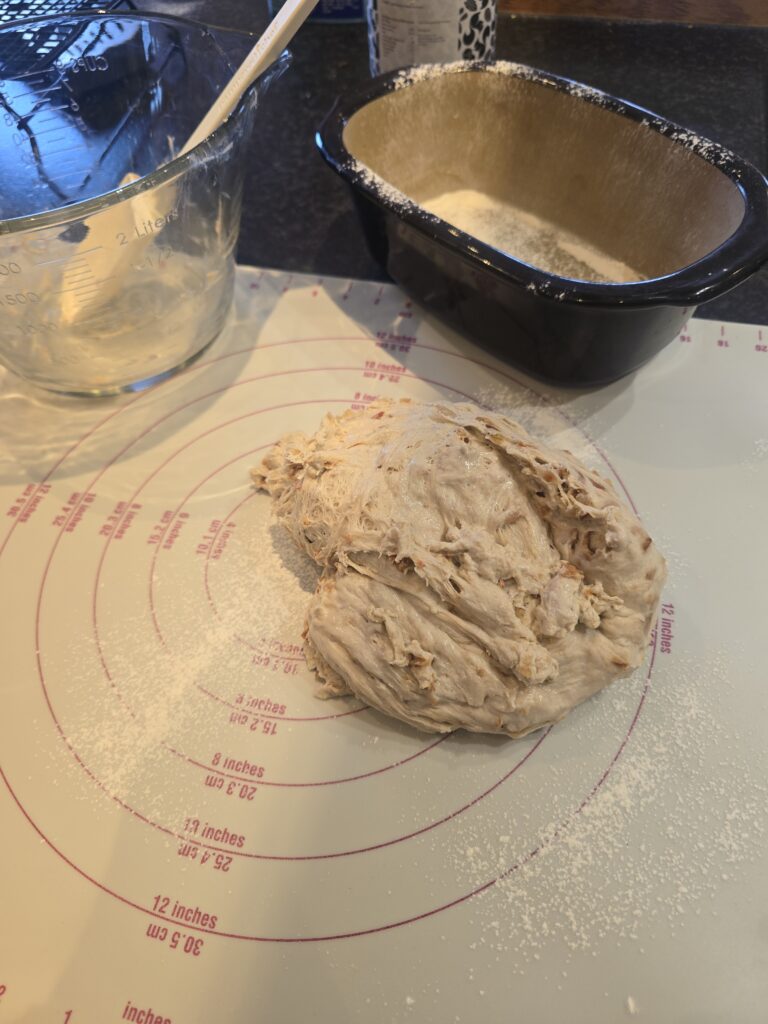 Teig auf die Teigunterlage geben
