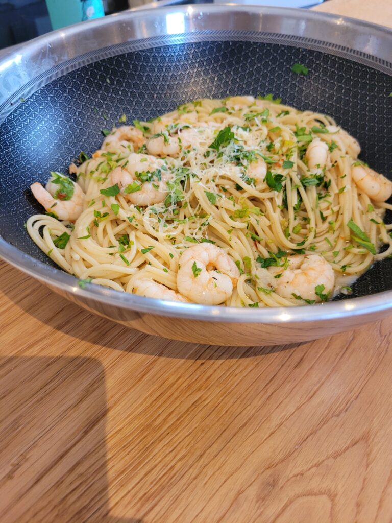 zerdrückte Knobizehen und halbierte Tomaten zufügen