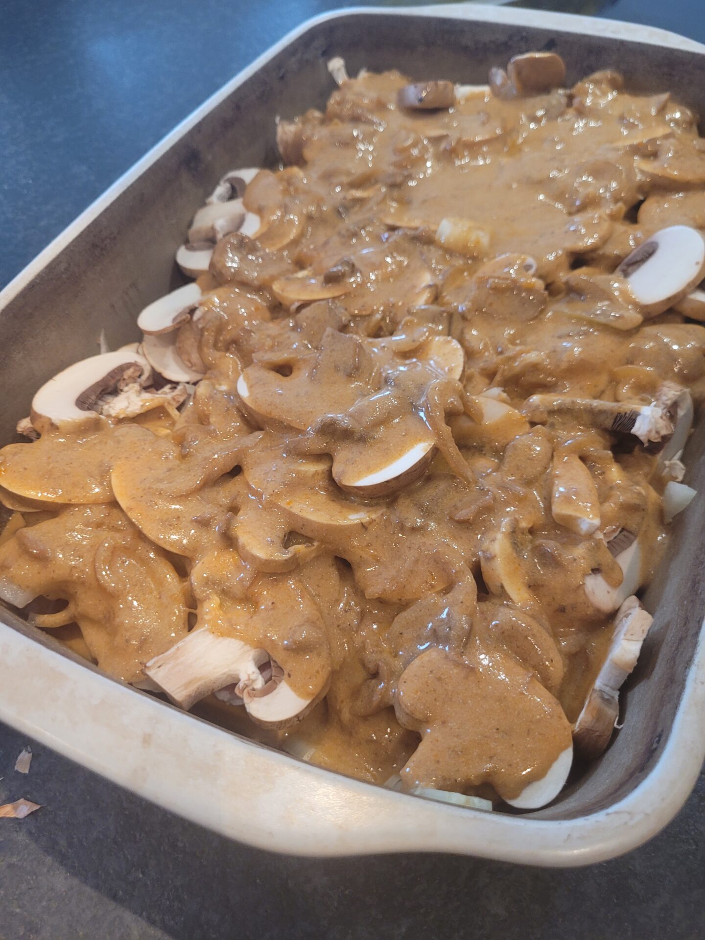 10 Minuten vor Garende das Stärkemehl mit 2 EL KALTEM Wasser verrühren und hinein rühren