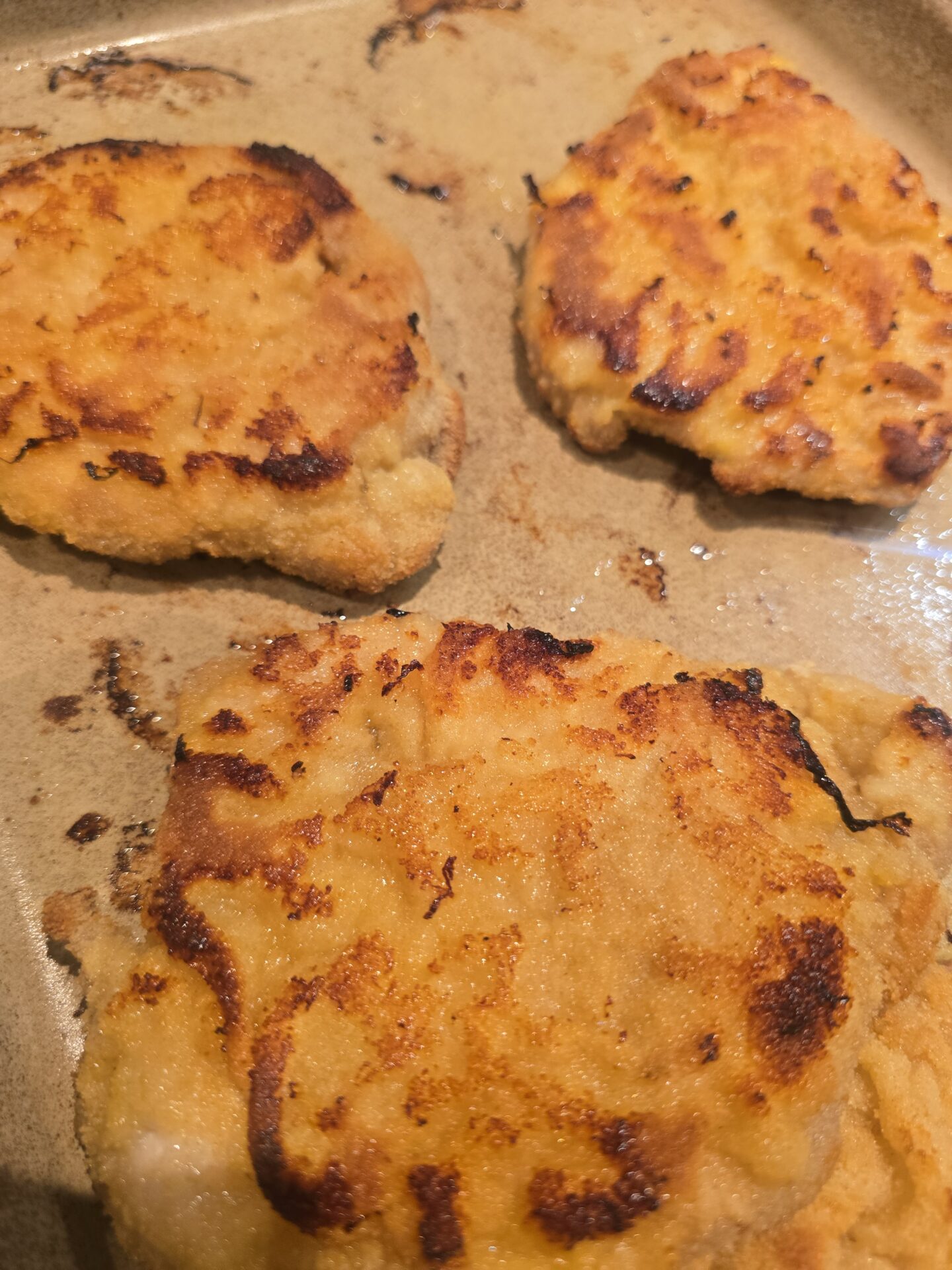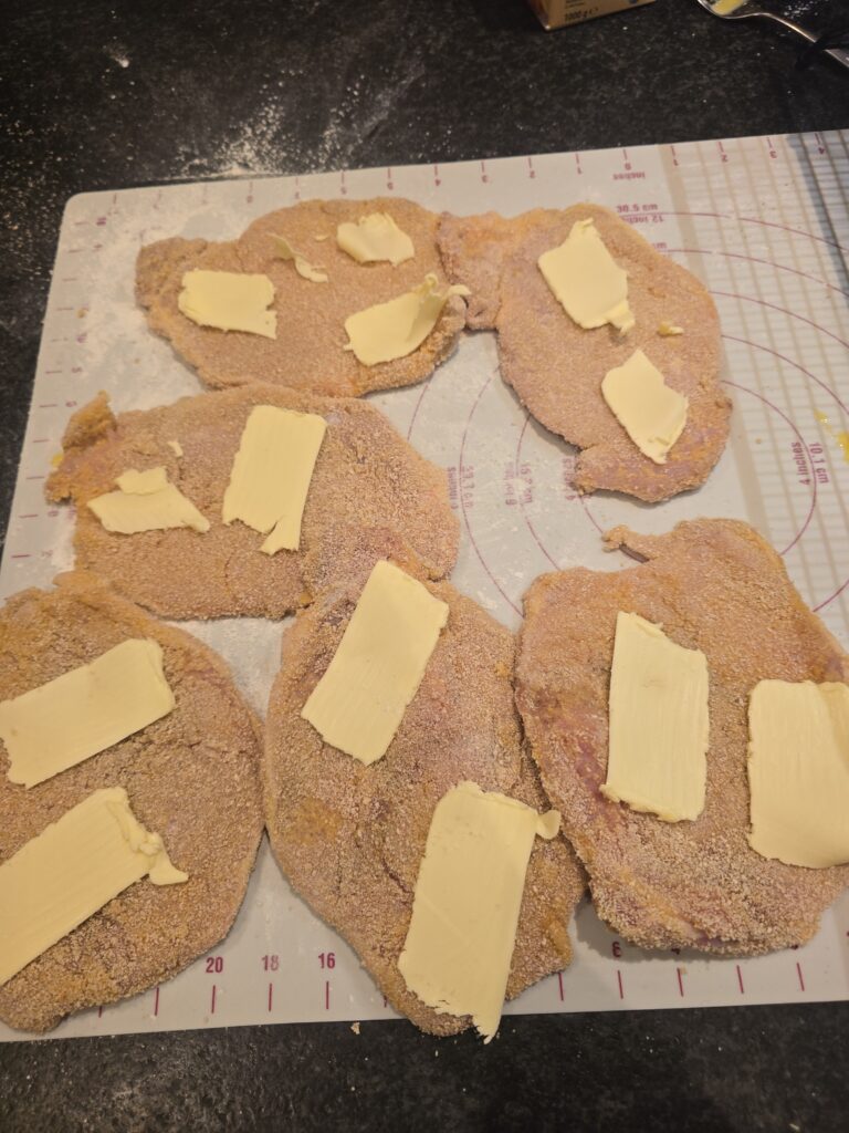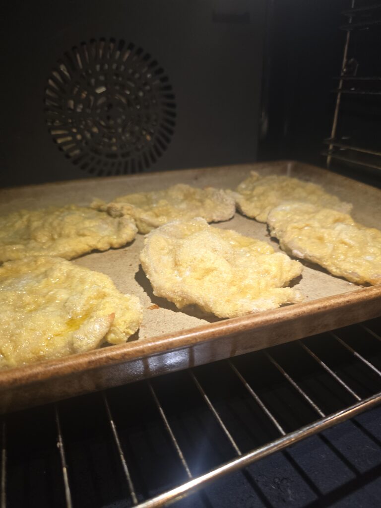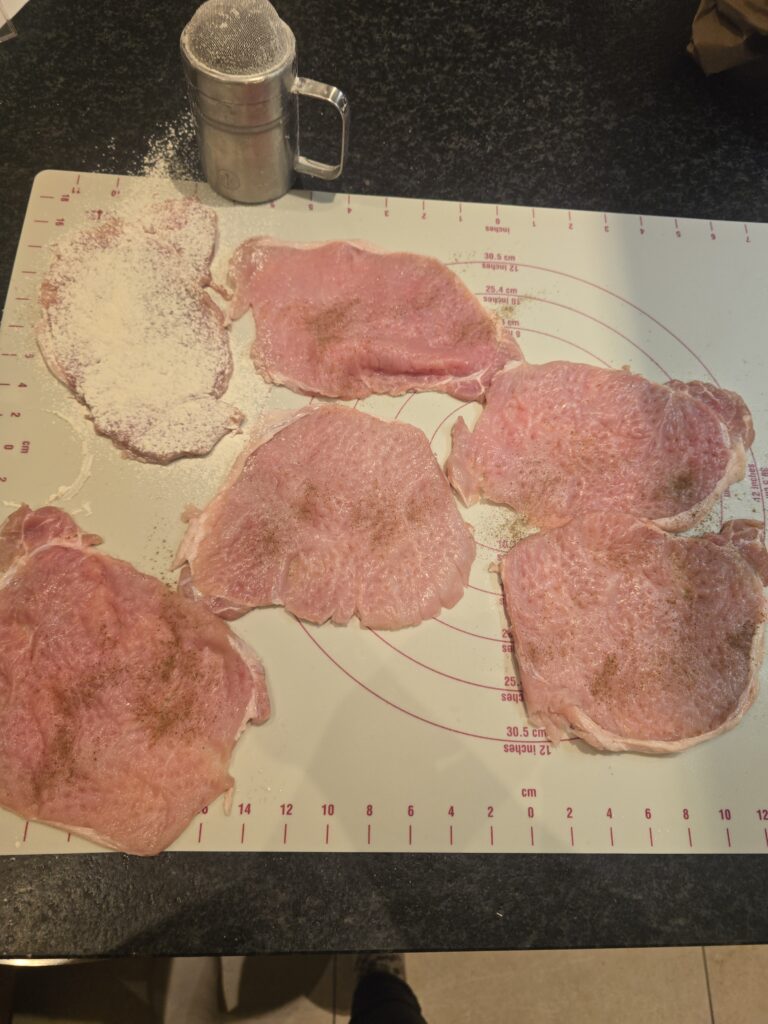 Schweineschnitzel klopfen auf der Teigunterlage klopfen