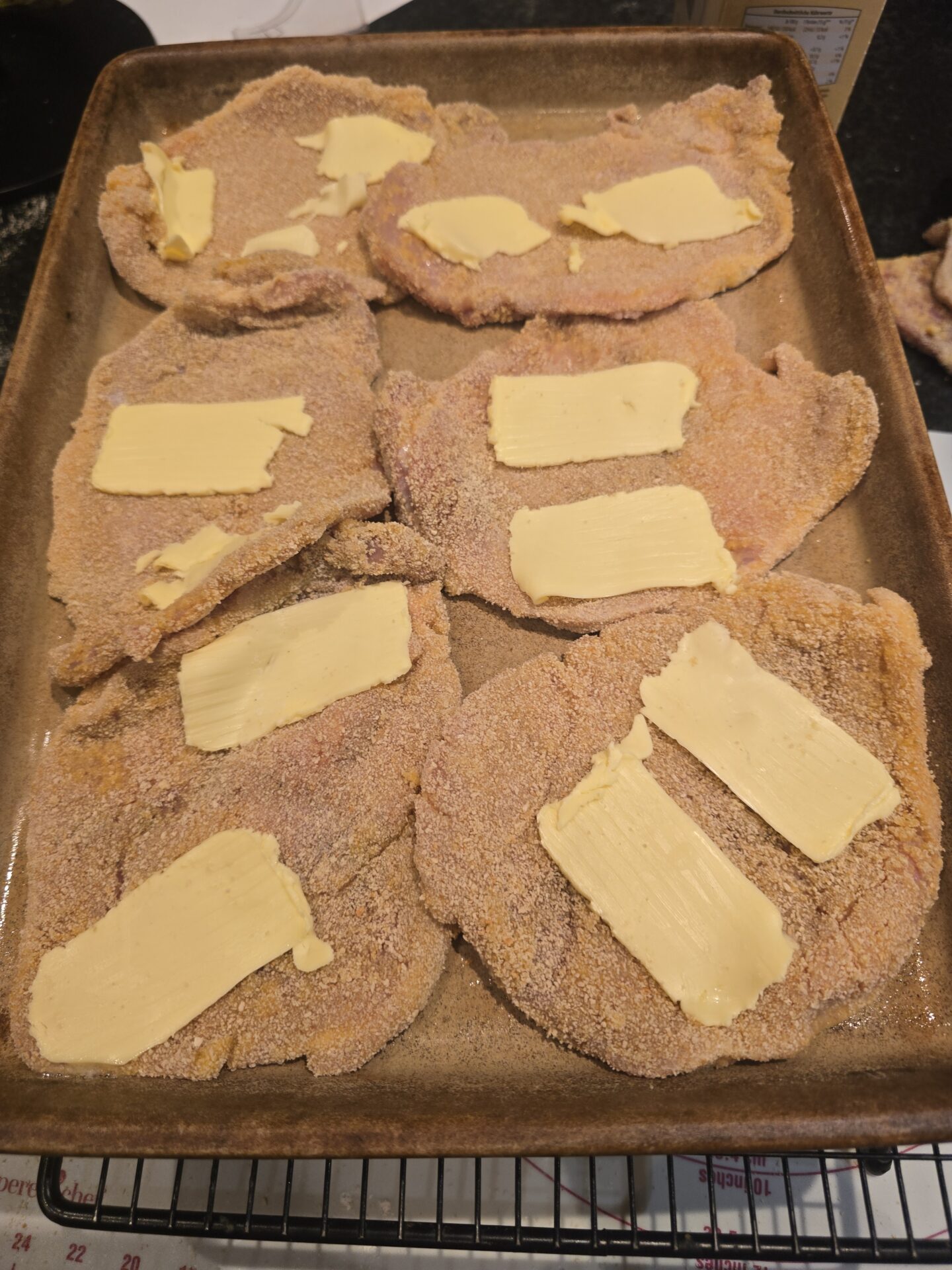 Heißen Stein aus dem Ofen nehmen, Butterschmalz verteilen