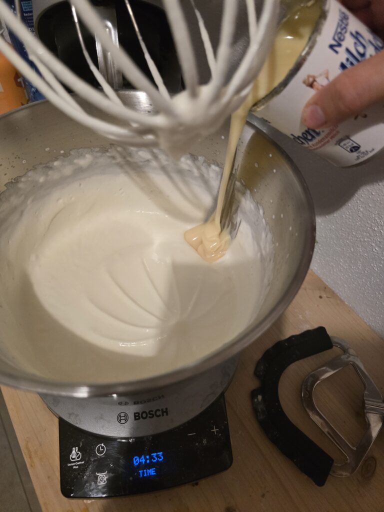 Damit sich die Kondensmilch nicht an Boden absetzt,