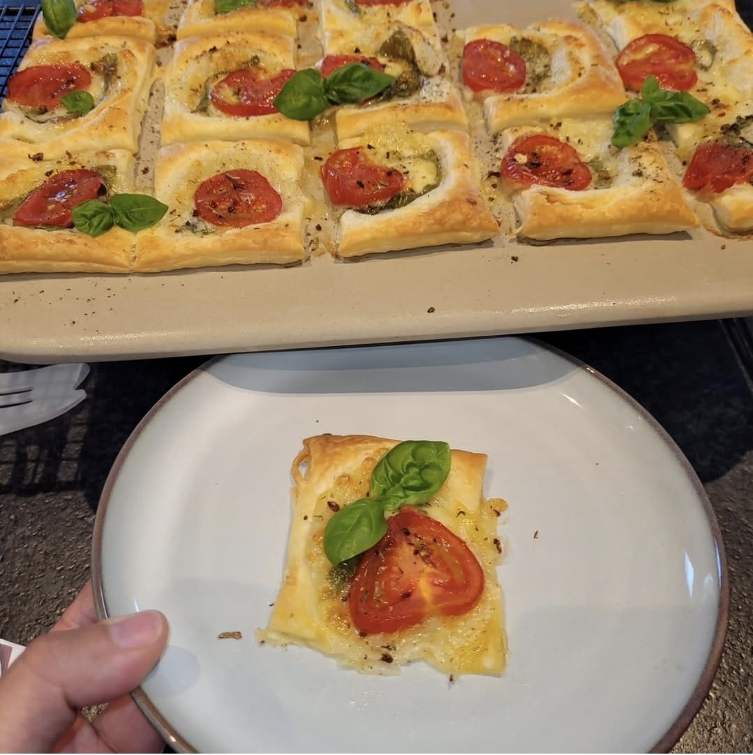 Es eignet sich auch gut Pesto statt dem Basilikumblatt