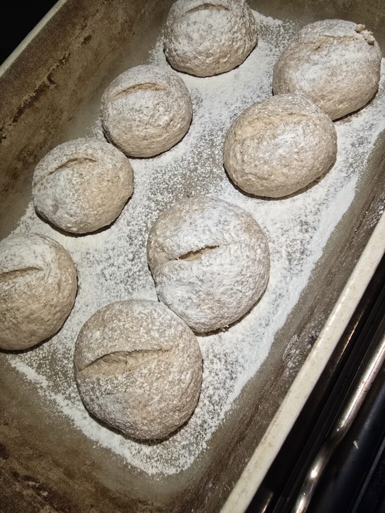 Semmeln nochmals 20 Minuten bei gleicher Temperatur fertig backen